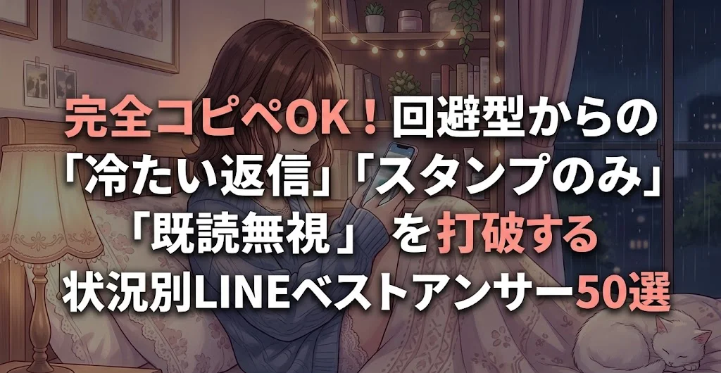 特典1:完全コピペOK!回避型からの「冷たい返信」「スタンプのみ」「既読無視」を打破する状況別LINEベストアンサー50選
