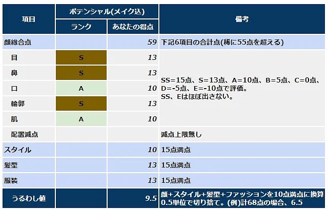 (↓うるわしさんの外見診断結果)