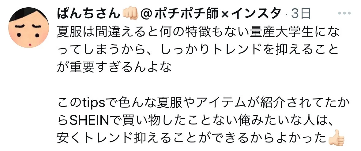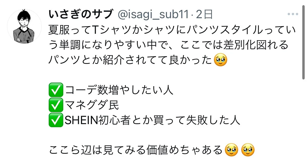 (2024/05/31追記:本Tipsで紹介しているアイテムと相性の良い、SHEIN以外のブランドについても加筆しました。)