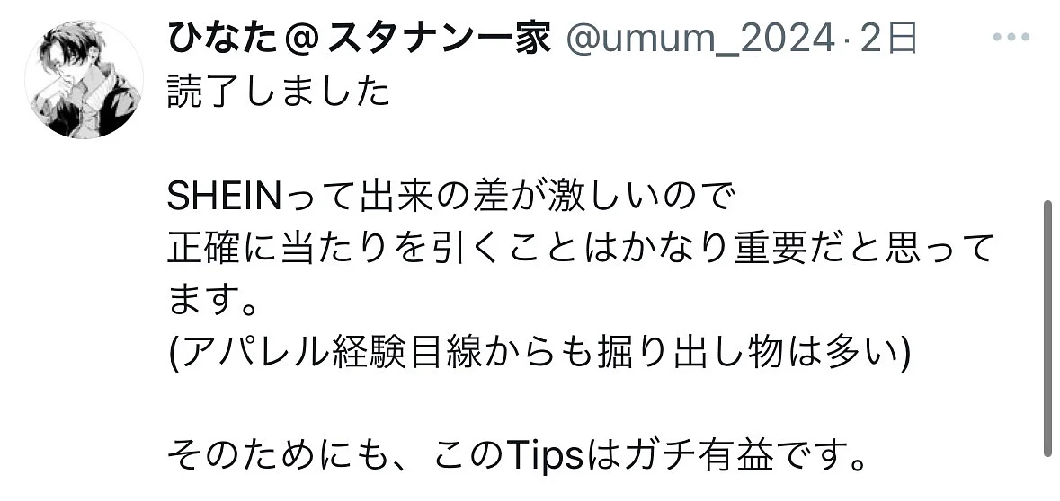 ですので、自分が人柱として購入品を実際にレビューすることで、SHEINでハズレを掴まされる人が1人でも減ればと思い、本記事を書きました。