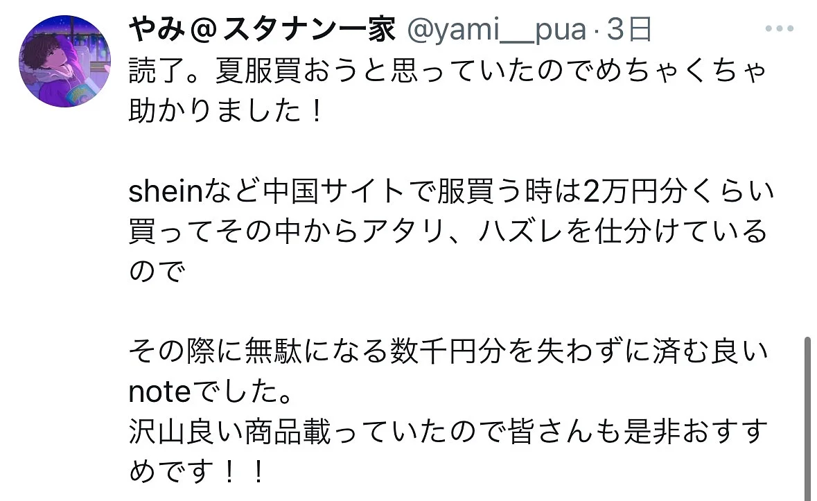 例えばSHEINで服をたくさん買っても、届いたもののうちたった3,000円の服1つだけがゴミだったら、いくら他の商品をお得に買えたとしてもその分の利益が全てパーになりますよね。