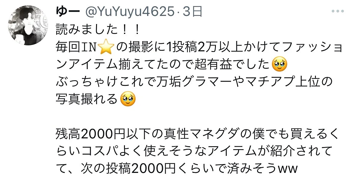 ラウンジ嬢や歌舞伎のぴえんなど特殊な人種ではなく、幅広くJDやOLに刺さるか?という点で見ています。