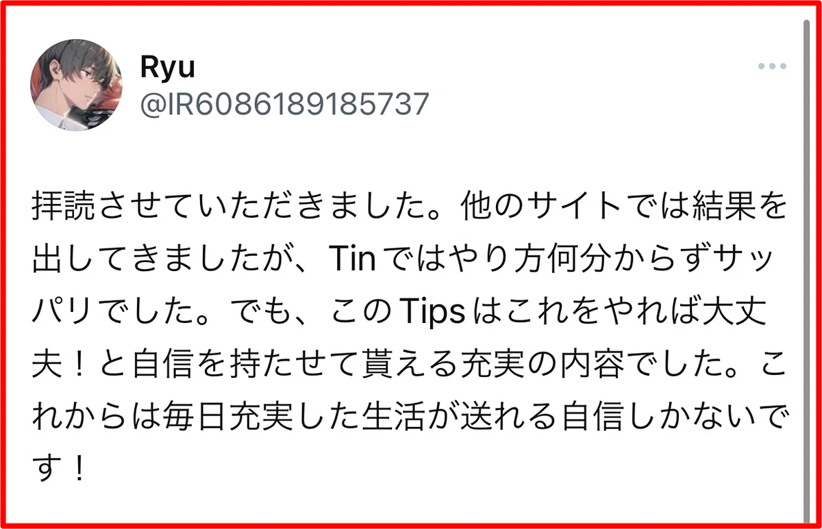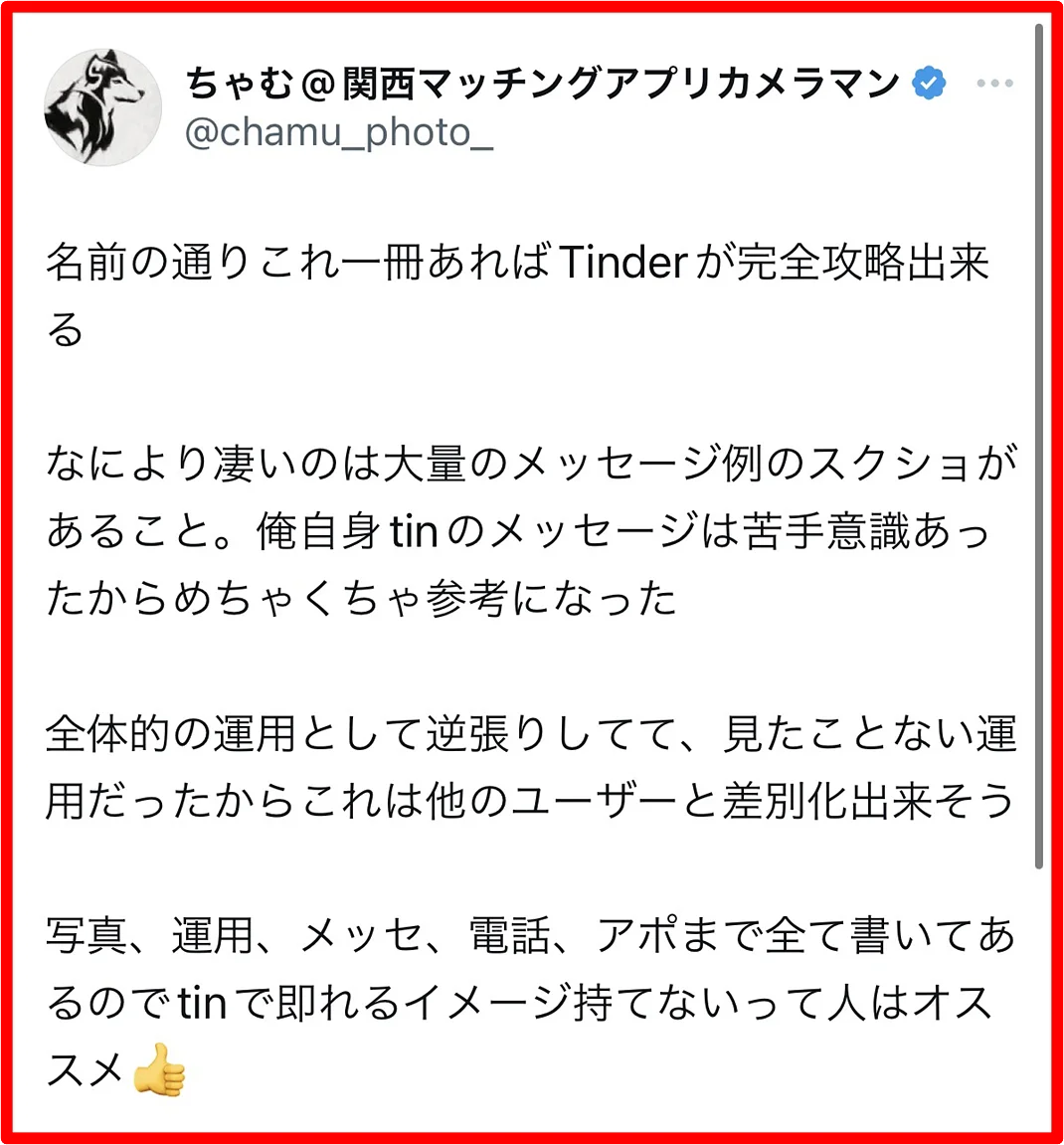 コンテンツ内容を見ていただければわかるように、Tinderに関するノウハウは全てこの一冊に集約されています。Tinder攻略の完成形であり、唯一無二の教科書となっています。